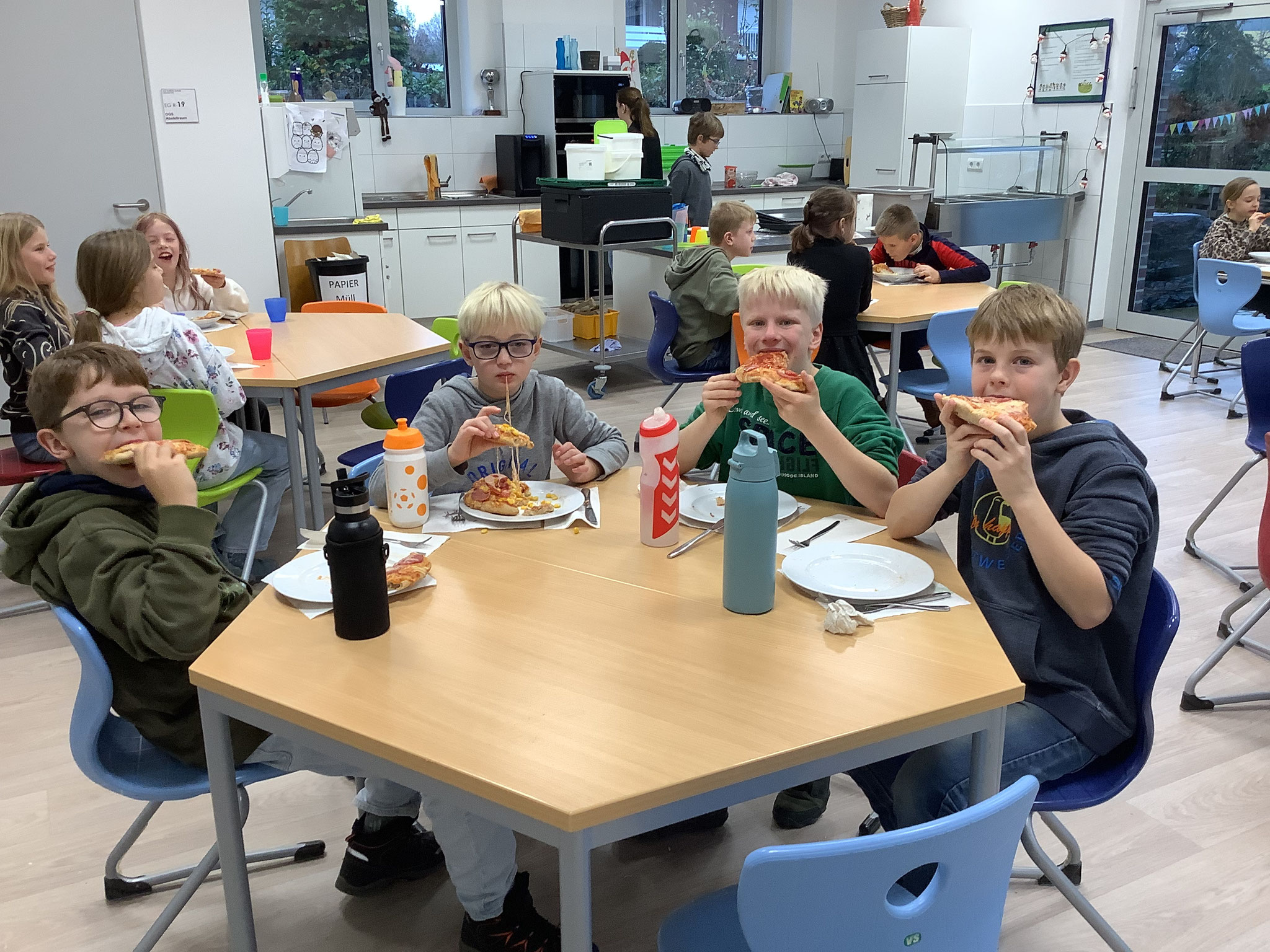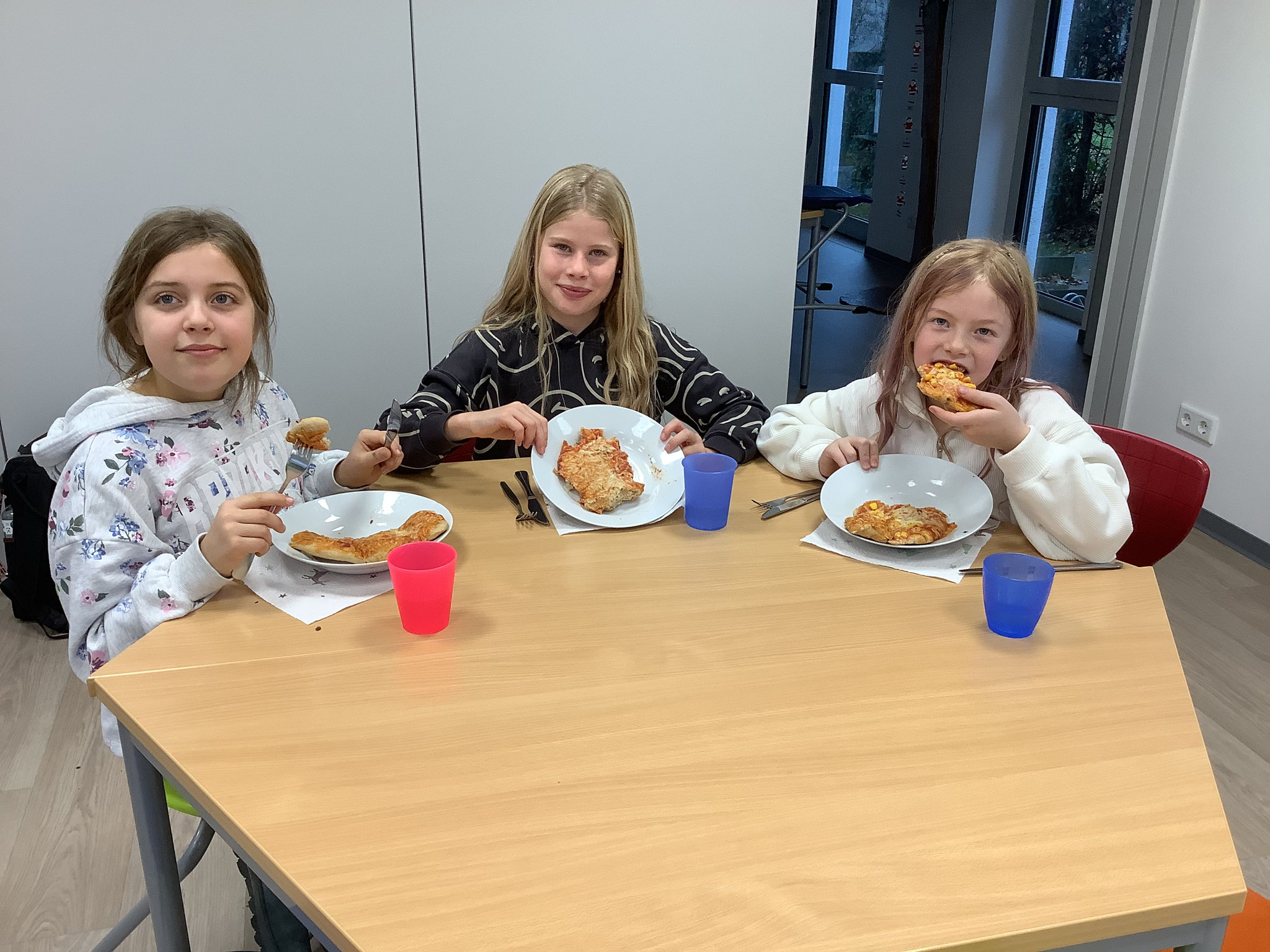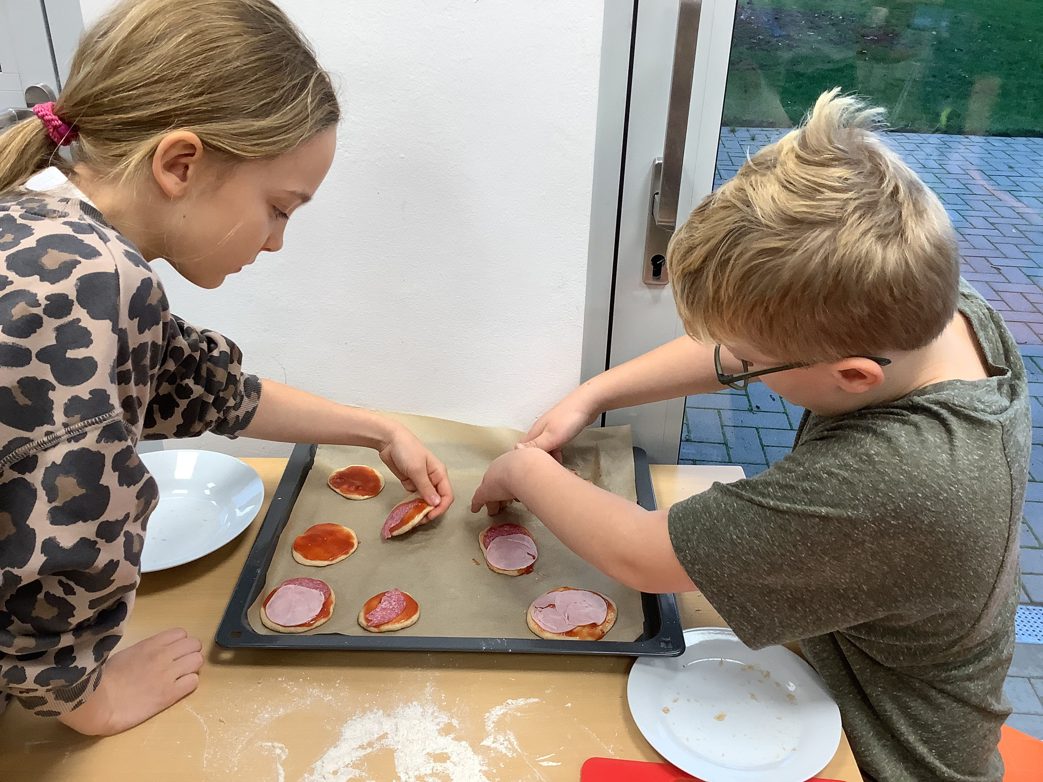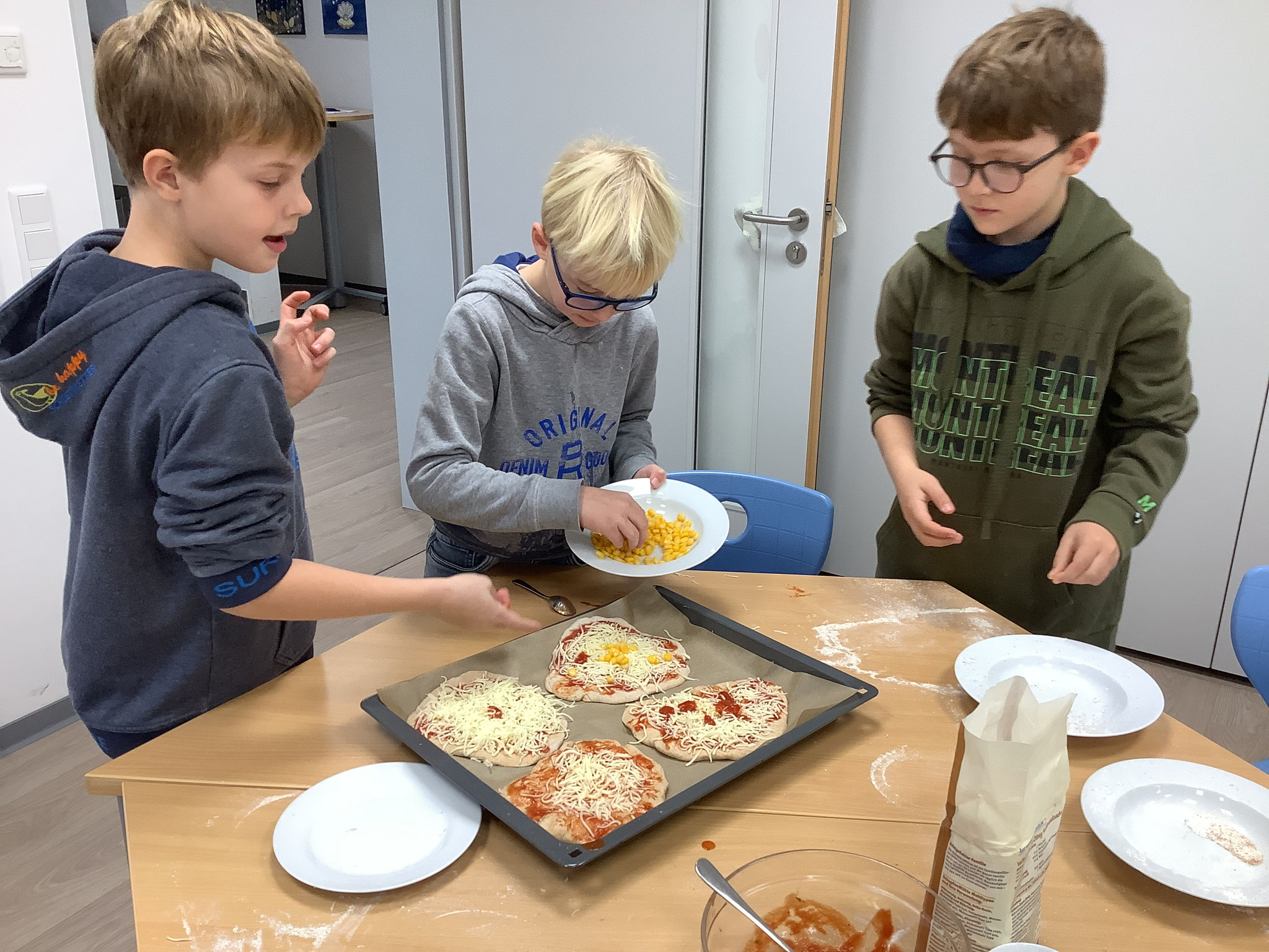 Die Kinder hatten besonders viel Spaß, beim gemeinsamen Zubereiten und Probieren von leckeren und gesunden Gerichten – unter anderem einer Pizza aus Dinkelvollkornmehl.